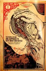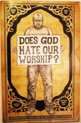 sad angry man with a sign that reads ‘Does God Hate Our Worship?’ with the